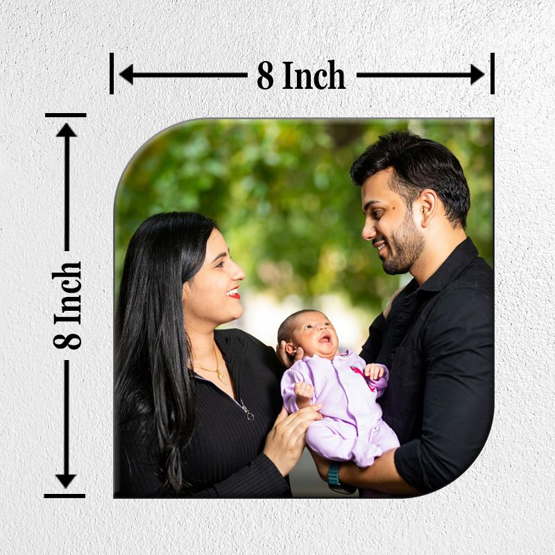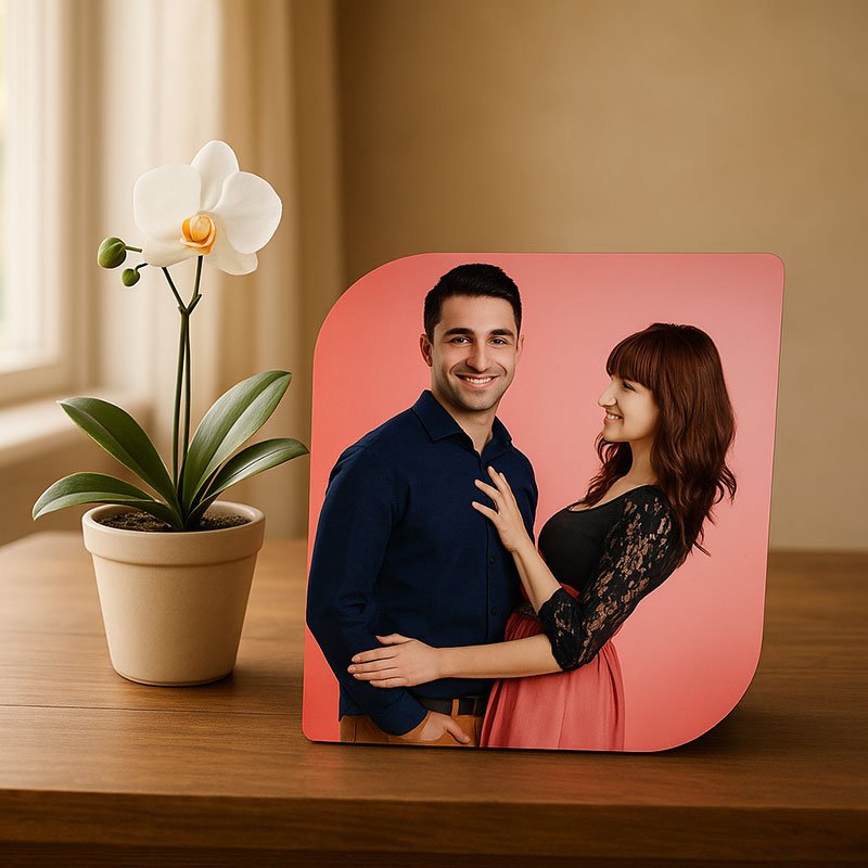 Celebrate the moments that matter most with this Rounded Corner Personalized Table Photo Frame. Printed on a sturdy 12mm MDF sheet with a sleek high-gloss finish, its smooth curves and modern design make it perfect for desks, side tables, or gifting.