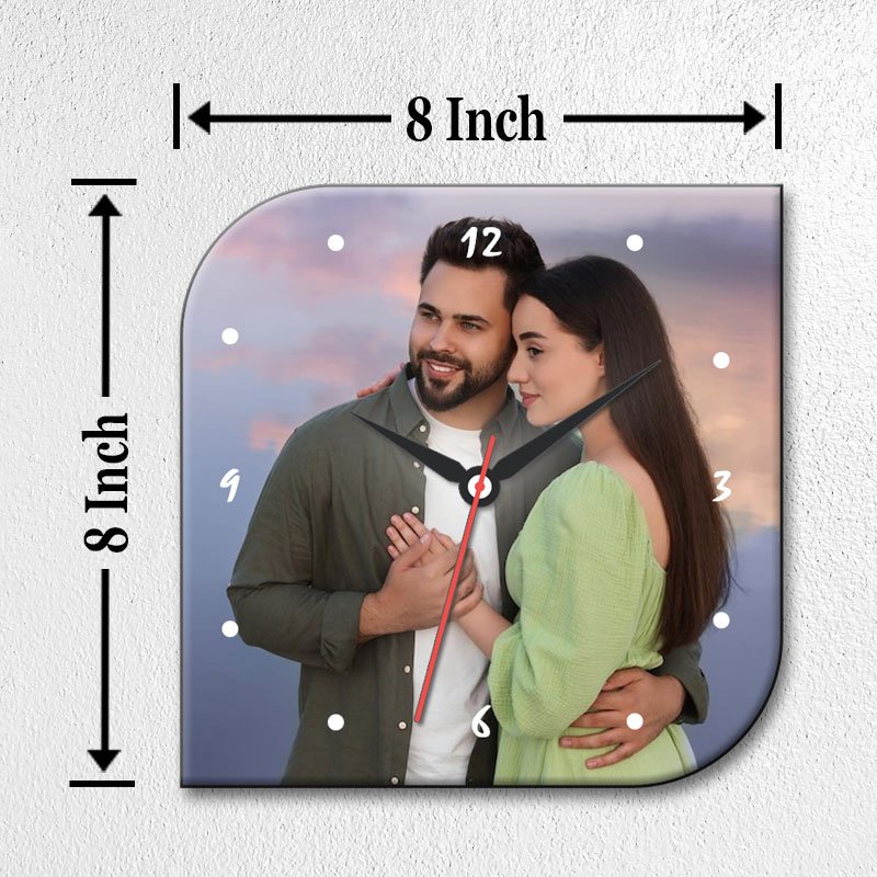 Add a modern, minimal touch to your decor with this Rounded Corner Square Personalized Photo Wall Clock. The sleek square base with soft curved edges is made from premium 12mm MDF and finished with high-gloss digital printing to showcase your favorite photo in rich, vivid detail.
