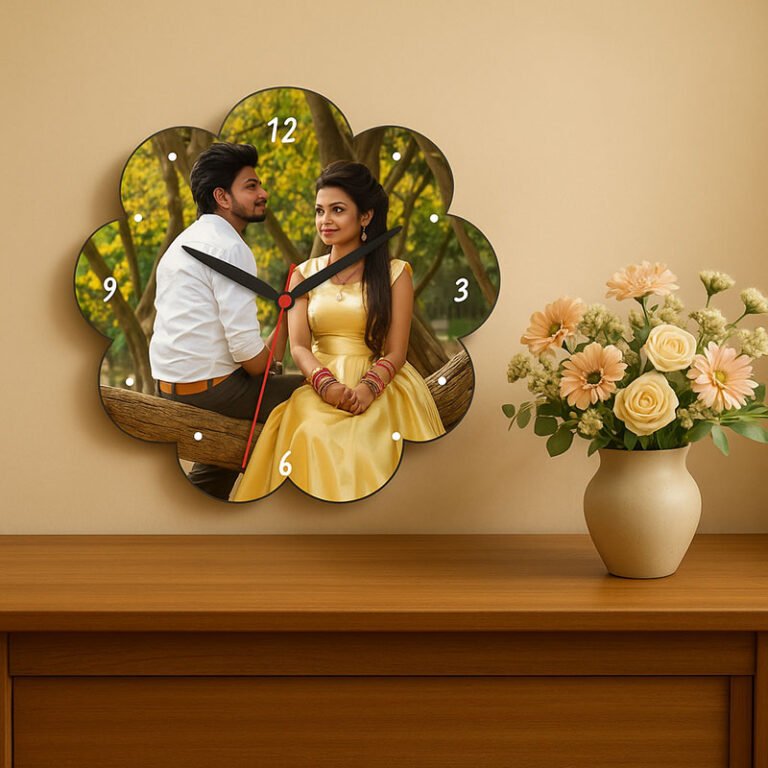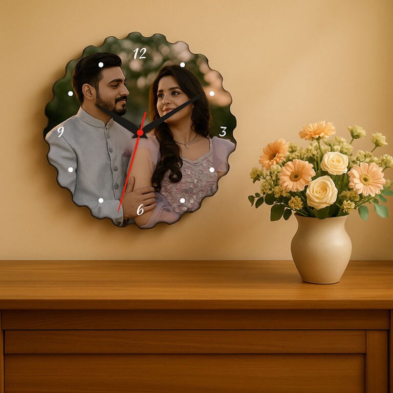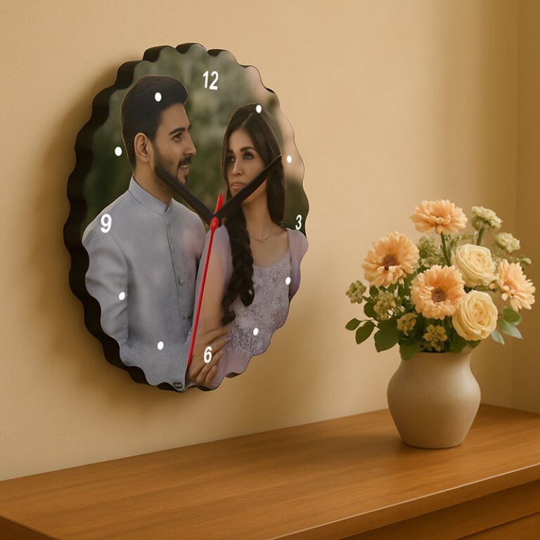 Layered Curve Design Round Personalized Photo Wall Clock
